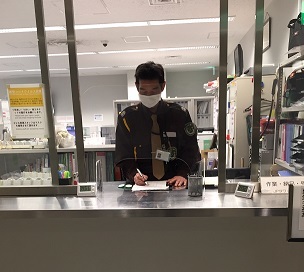 施設内外を固定ルートで見回る業務です。